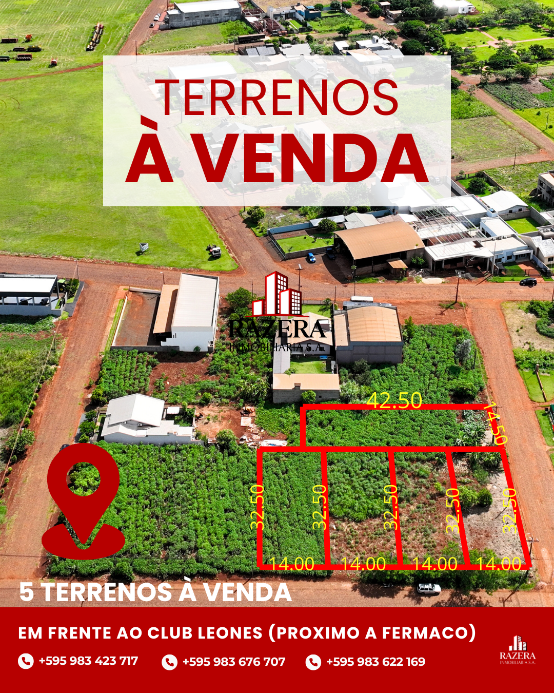 • 4 lotes medindo 32,50 x 14,00 metros